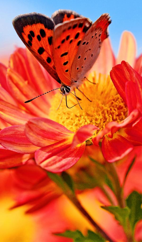 Wallpaper Orange flowers of dahlia with butterfly