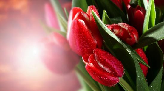 Wallpaper Beautiful red tulips with water drops