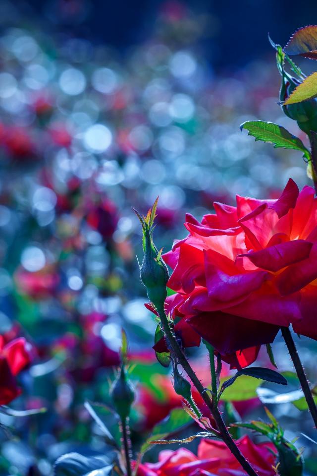 Wallpaper Multicolored lilies with buds on a flowerbed in the garden