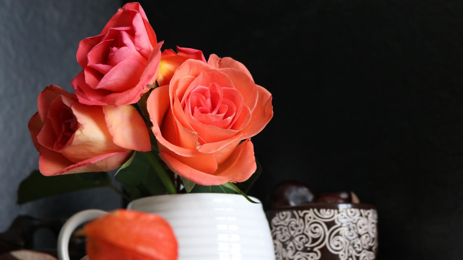 Wallpaper A bouquet of roses in a vase on a table with a book