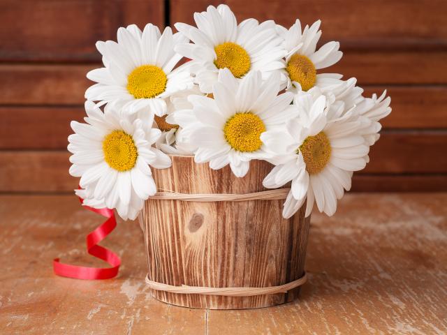 Wallpaper A bouquet of large white daisies in a wooden vase