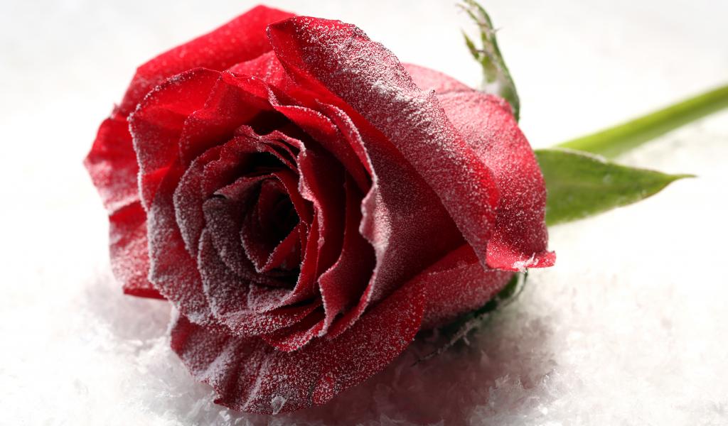 Wallpaper Covered with hoarfrost rose in the snow