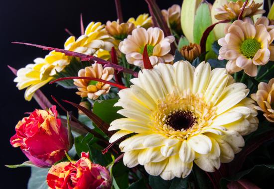 Wallpaper Bouquet with gerbera flowers, roses and chrysanthemums