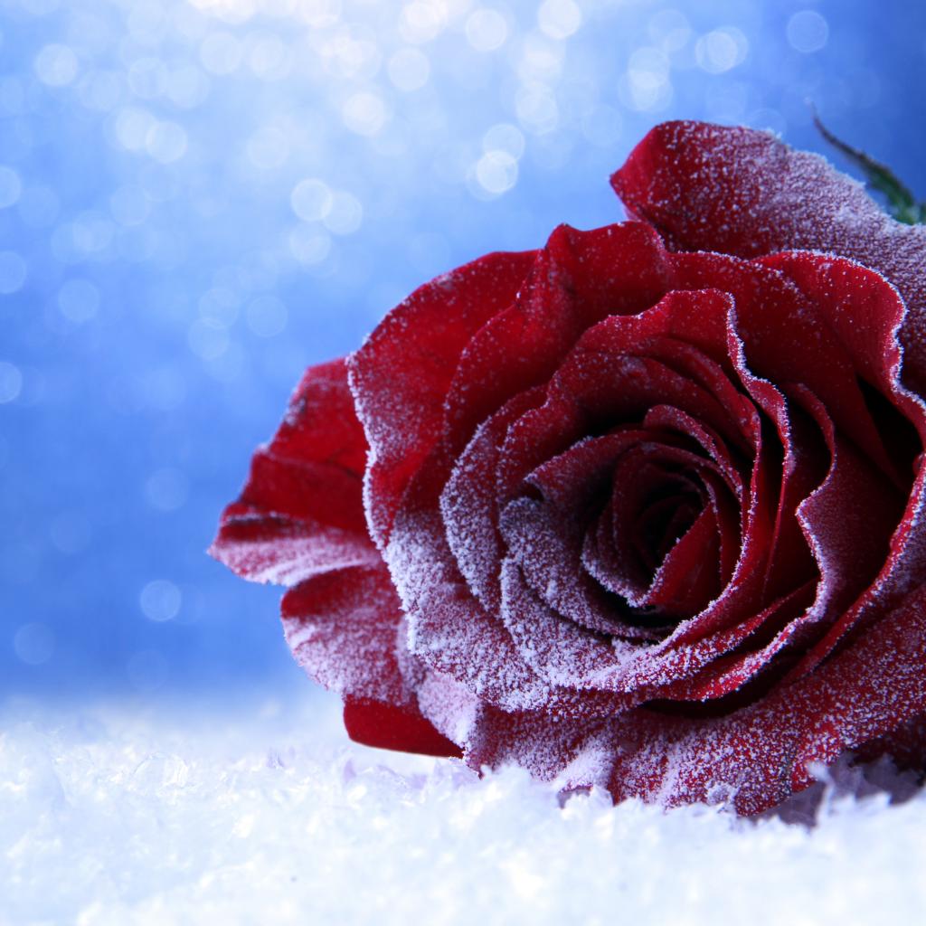 Wallpaper Covered with frost rose in the snow on a blue background