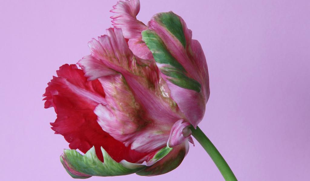 Wallpaper Beautiful multi-colored tulip on a pink background close-up