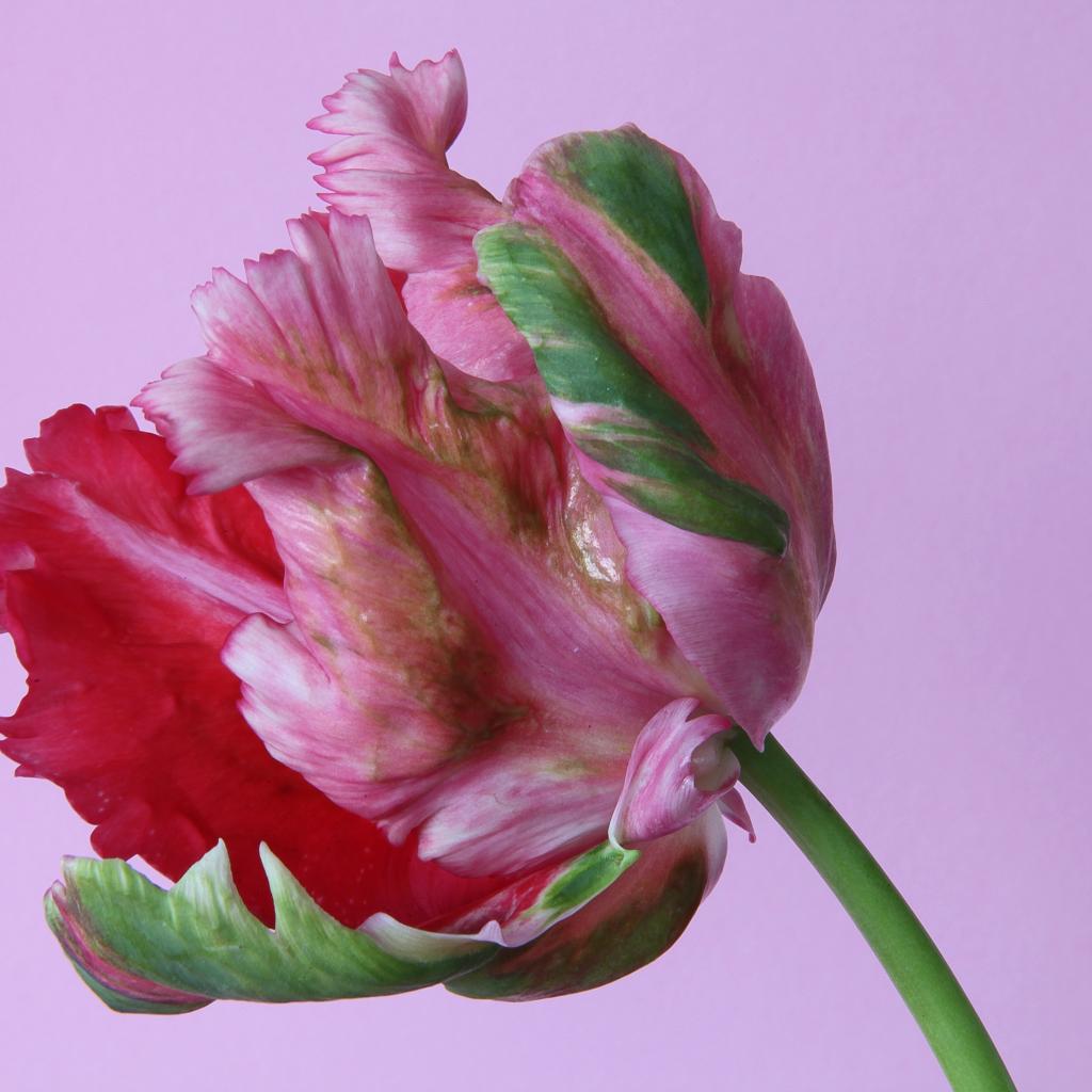 Wallpaper Beautiful multi-colored tulip on a pink background close-up