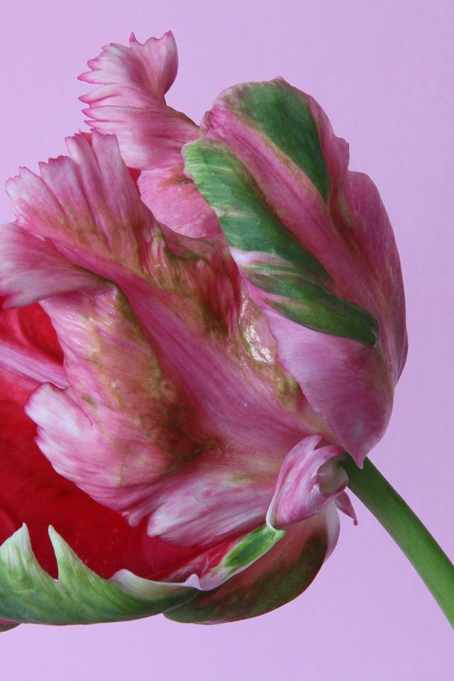 Wallpaper Beautiful multi-colored tulip on a pink background close-up