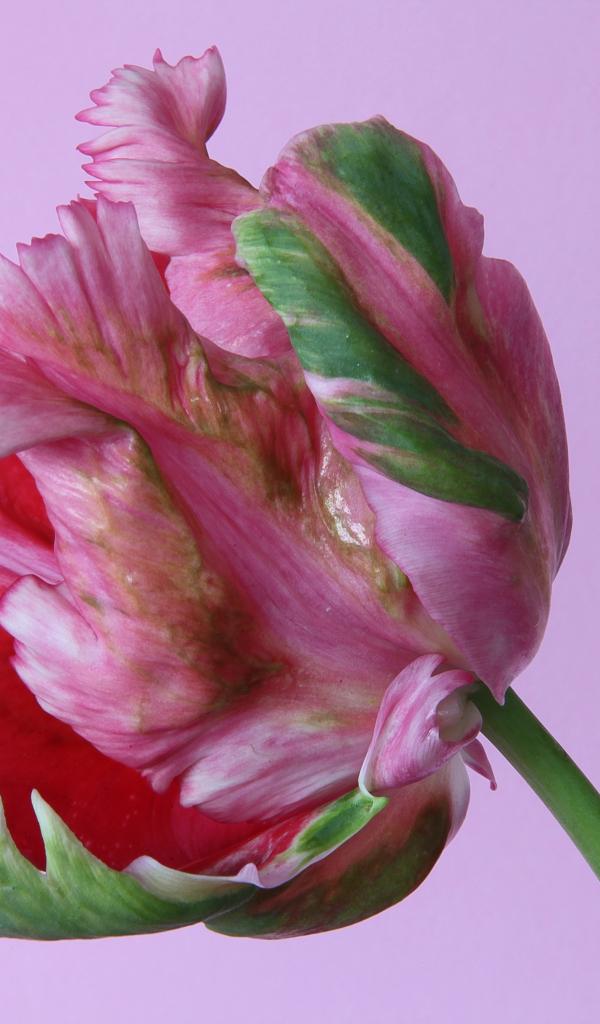 Wallpaper Beautiful multi-colored tulip on a pink background close-up