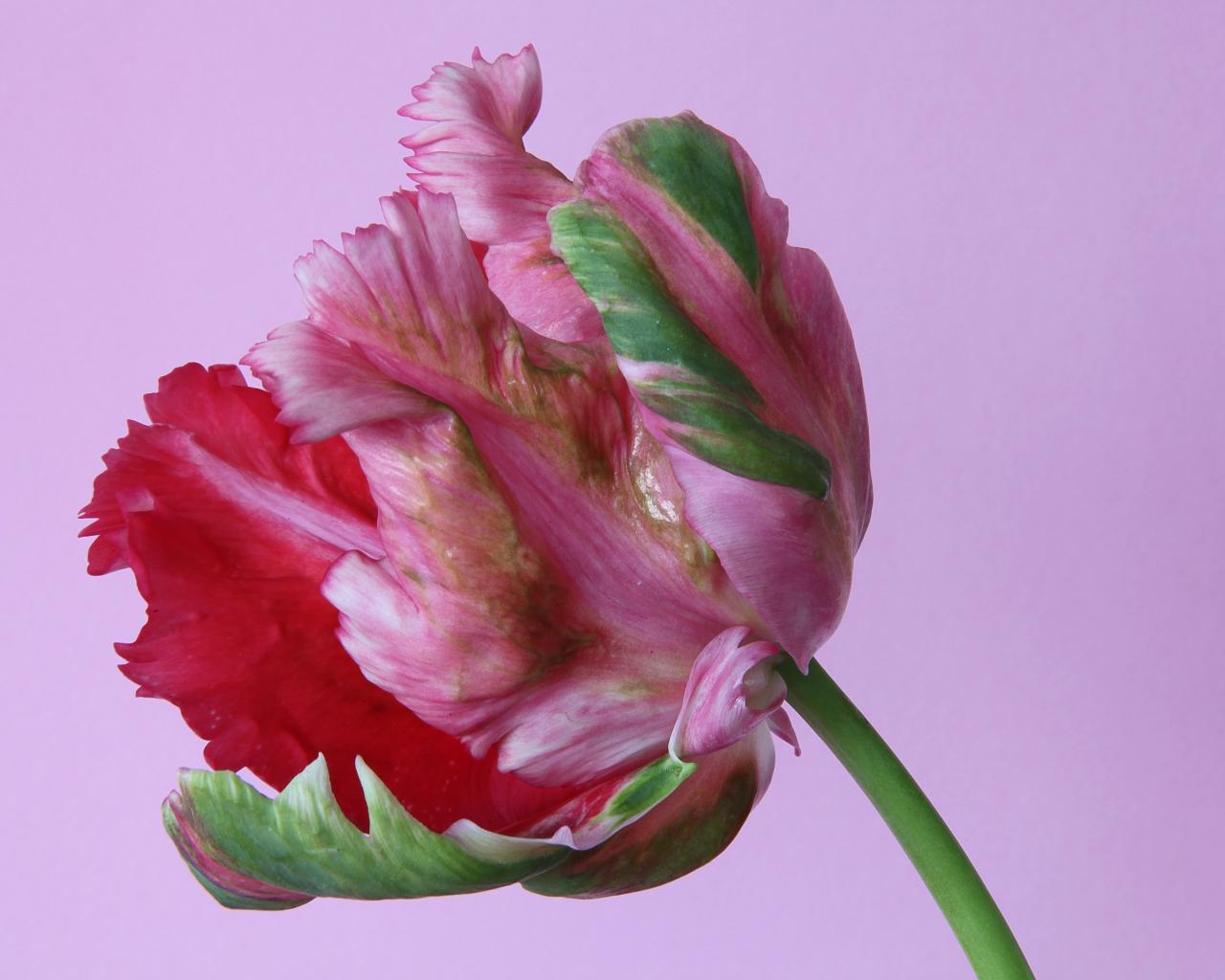 Wallpaper Beautiful multi-colored tulip on a pink background close-up