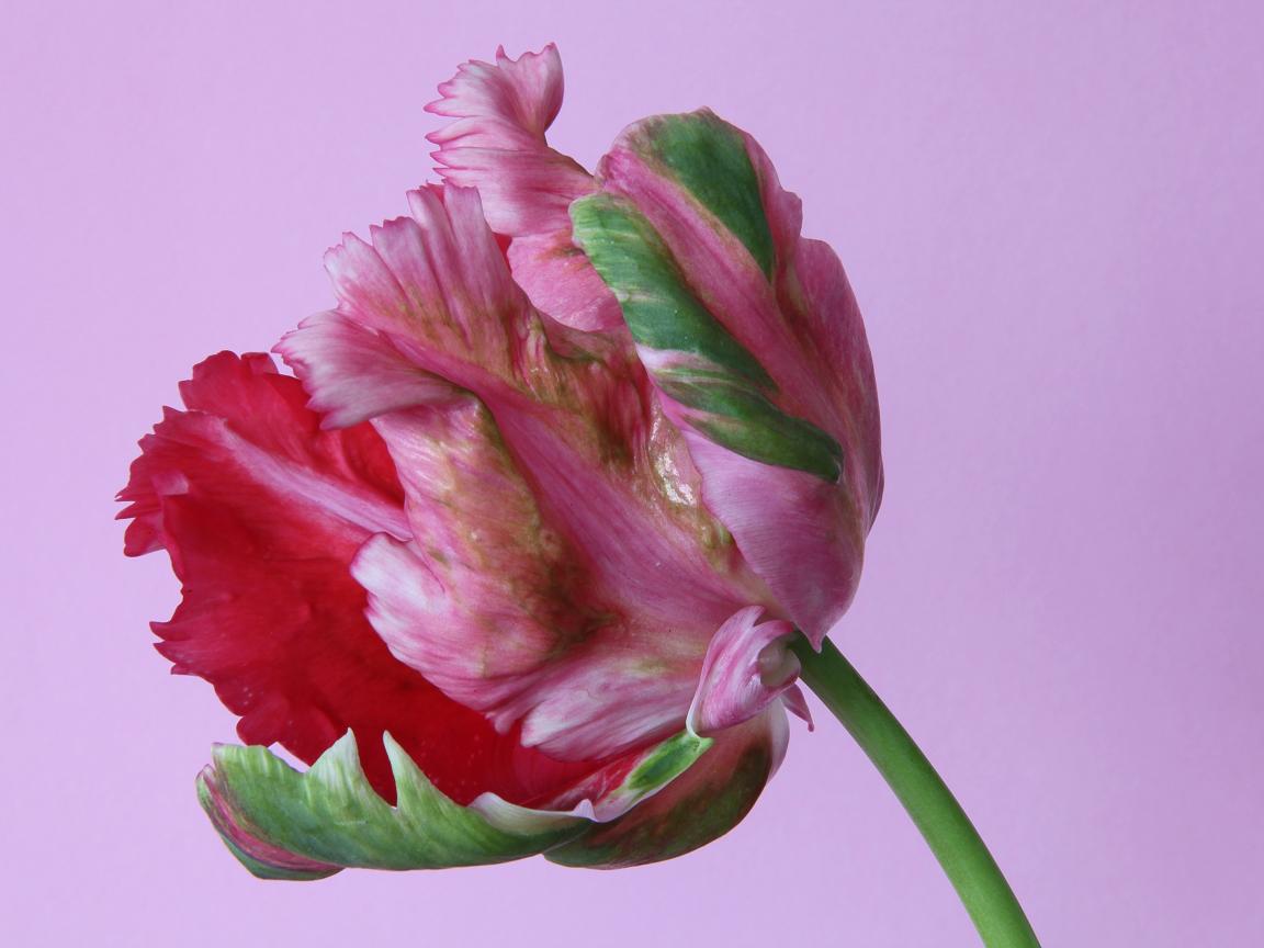 Wallpaper Beautiful multi-colored tulip on a pink background close-up