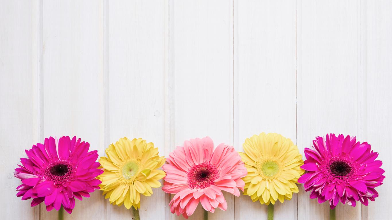 Wallpaper Five colorful gerberas on the table
