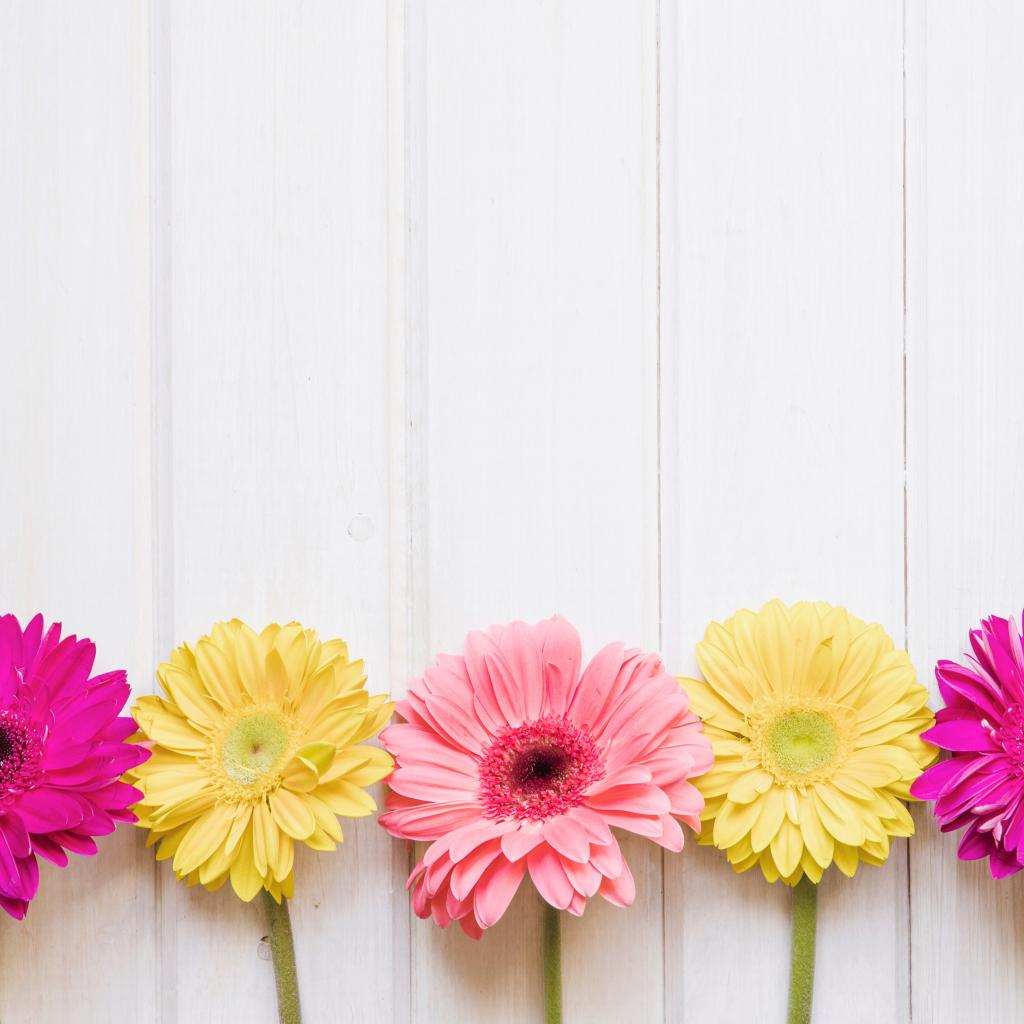 Wallpaper Five colorful gerberas on the table