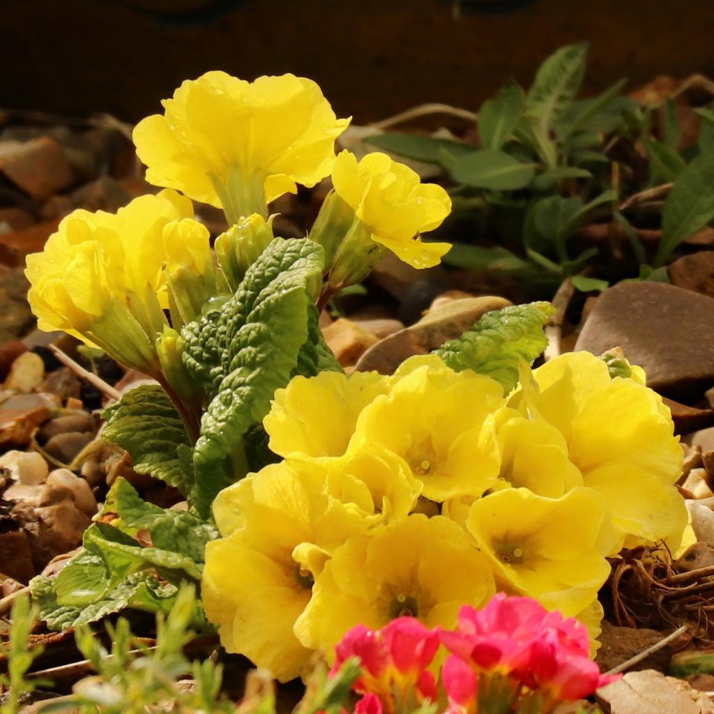 Wallpaper Beautiful flowers of primrose on the flower bed