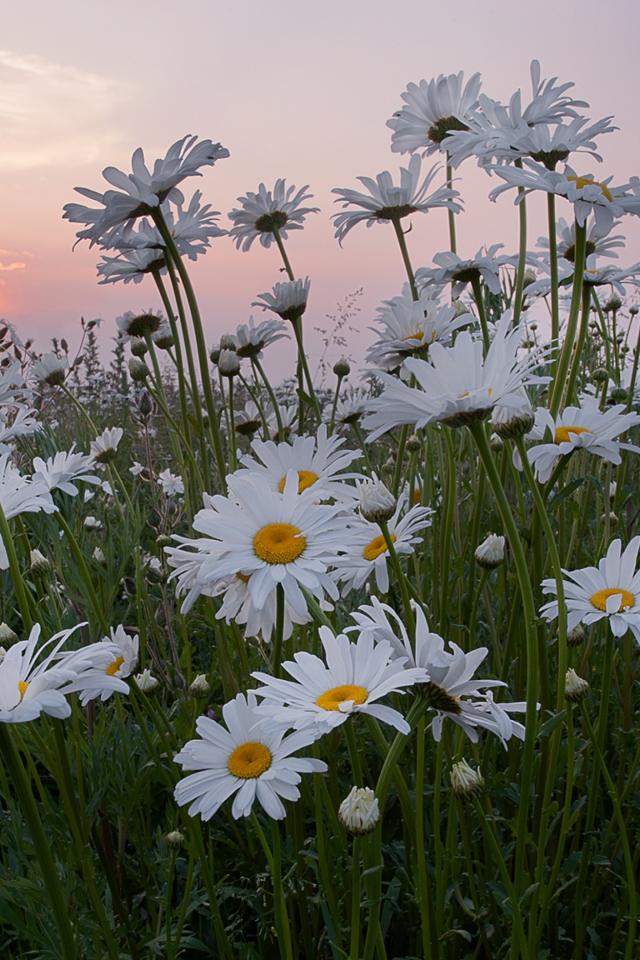 Wallpaper White summer daisies against the background of the rising sun