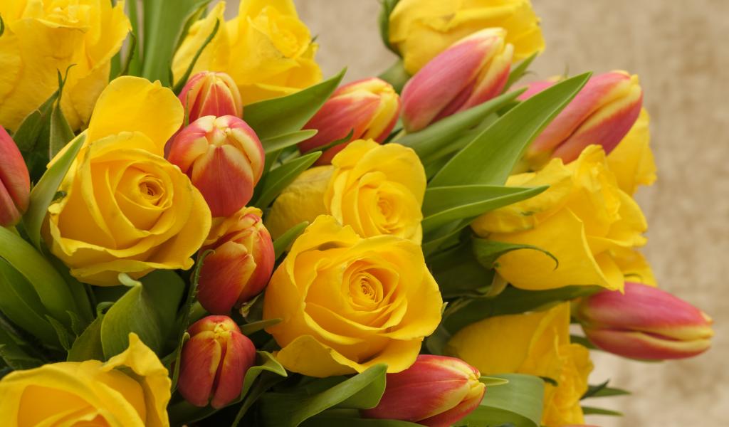 Wallpaper Bouquet with roses, tulips, matthiola, and hyacinth flowers