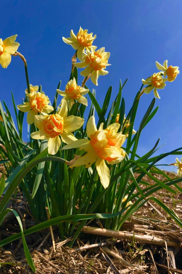 Wallpaper Beautiful yellow daffodils against the blue sky