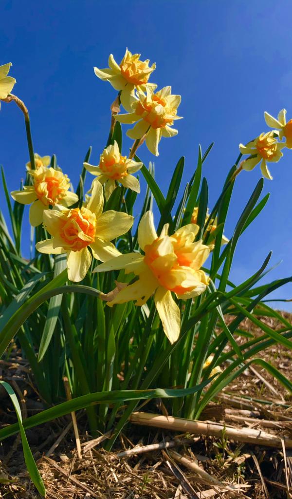 Wallpaper Beautiful yellow daffodils against the blue sky