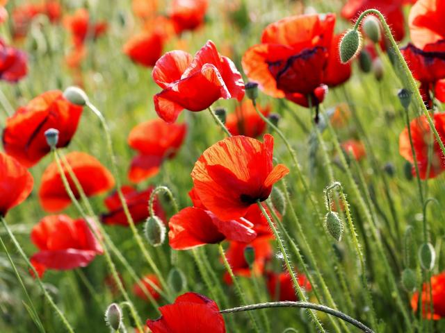 Wallpaper Red poppies in summer closeup