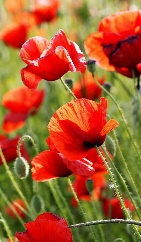Wallpaper Red poppies in summer closeup