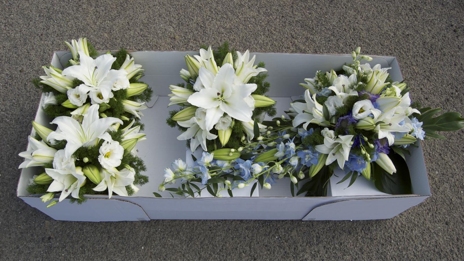 Wallpaper Bouquets with white lily flowers and eustoma