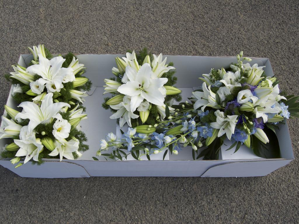 Wallpaper Bouquets with white lily flowers and eustoma