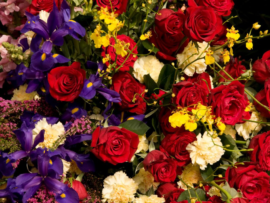 Wallpaper Roses, irises, carnations, orchids closeup