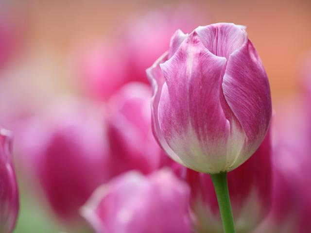 Wallpaper Beautiful multi-colored tulip on a pink background close-up