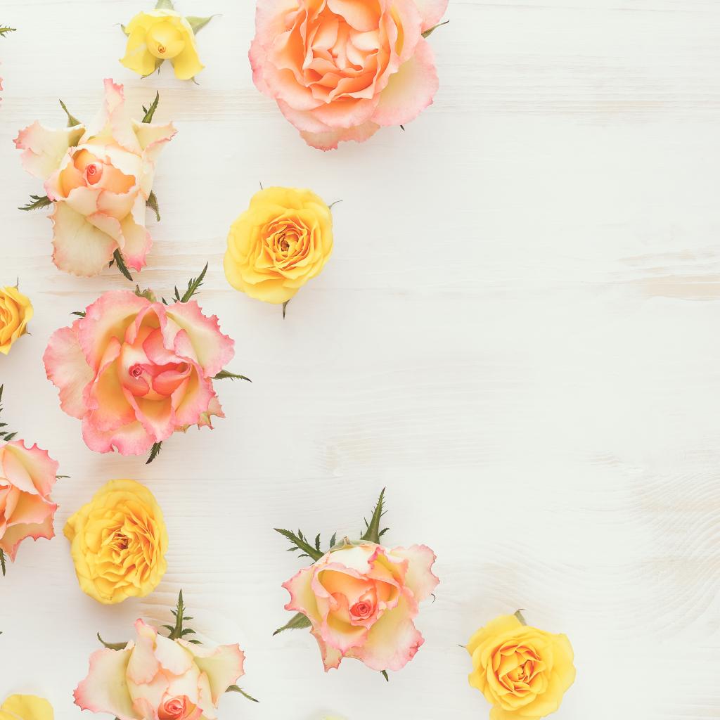 Wallpaper Torn flowers of pink and yellow roses on the table