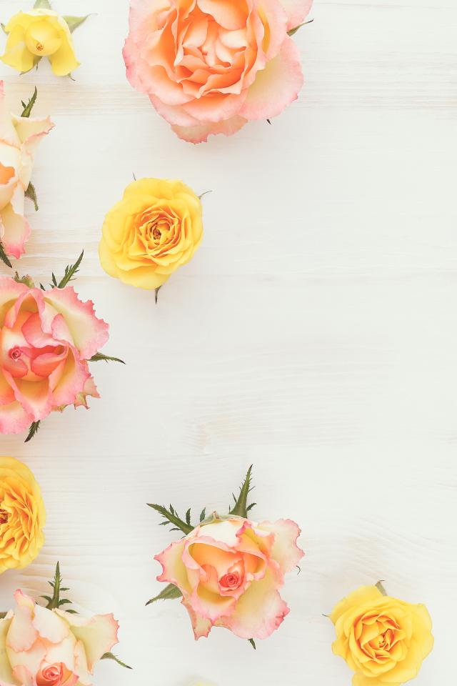 Wallpaper Torn flowers of pink and yellow roses on the table