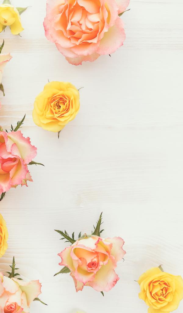 Wallpaper Torn flowers of pink and yellow roses on the table