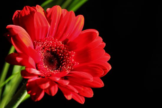 Wallpaper Red gerbera flower on a black background close-up