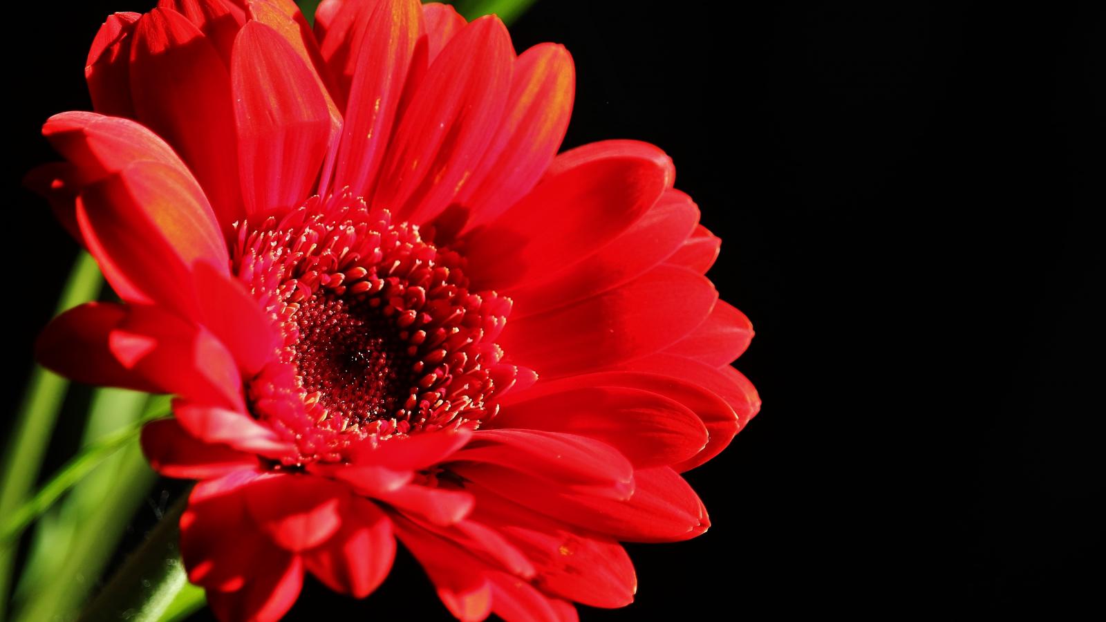 Wallpaper Red gerbera flower on a black background close-up