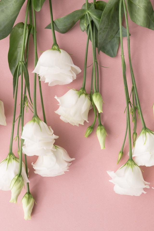 Wallpaper White eustoma flowers on a pink background