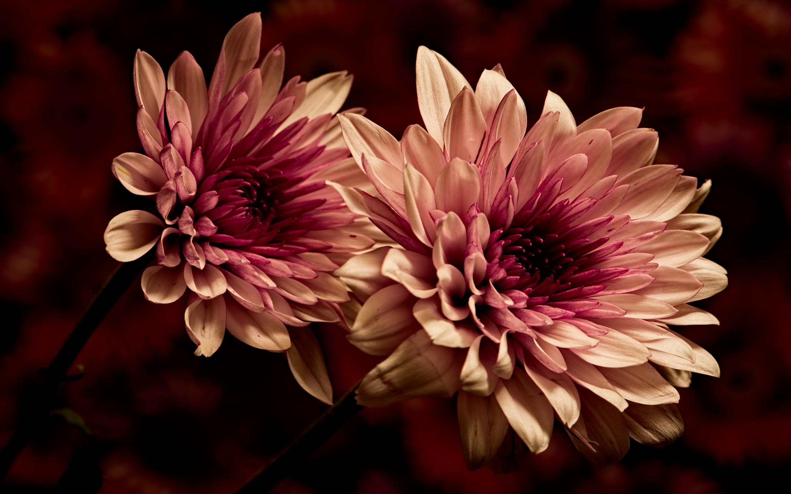 Wallpaper Two pink chrysanthemums close-up