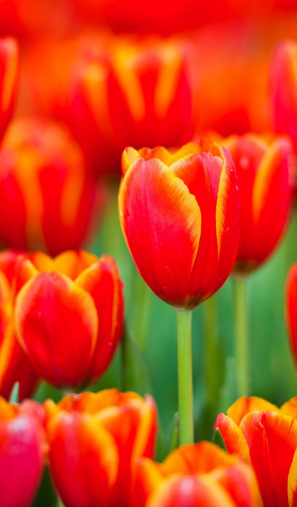 Wallpaper Red tulips with yellow rims on petals