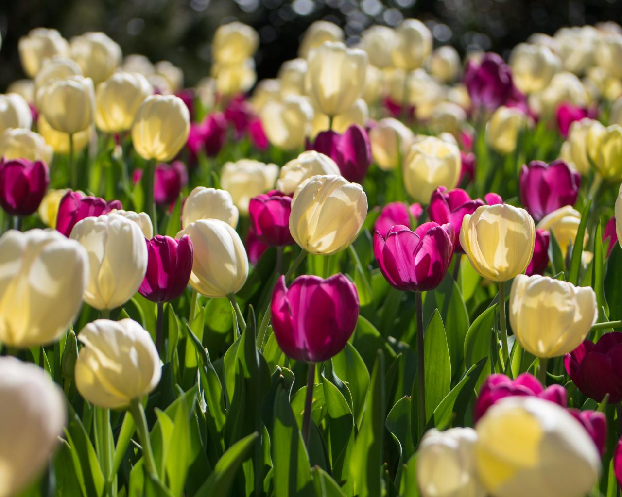 » Wallpaper White and purple tulips in the sun