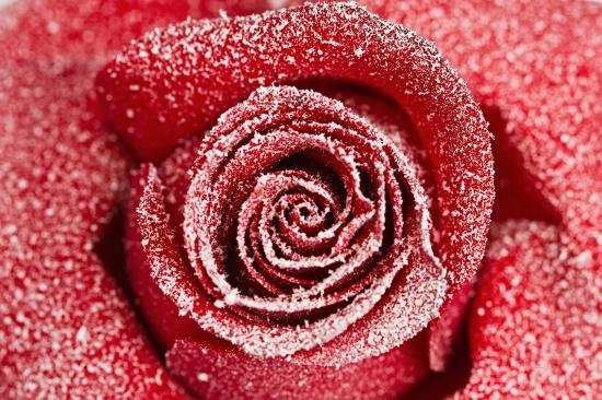 Wallpaper Red rose covered with hoarfrost close up