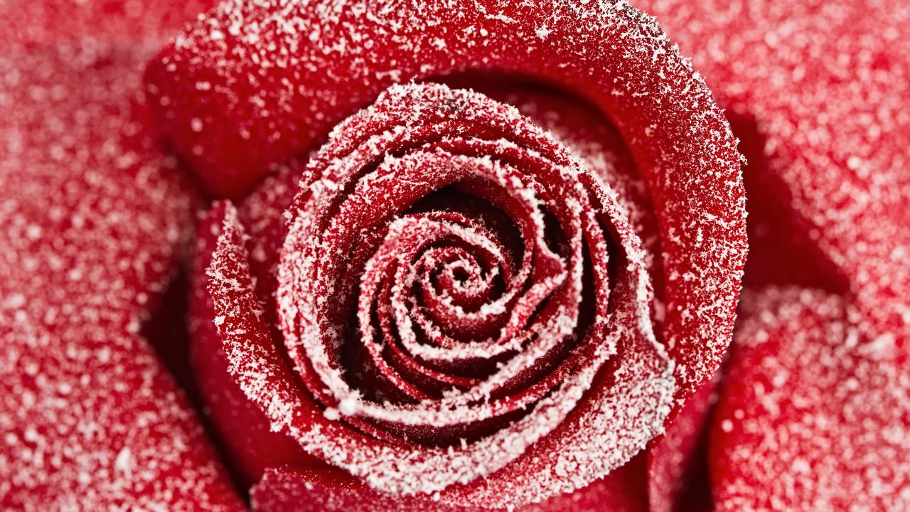 Wallpaper Red rose covered with hoarfrost close up