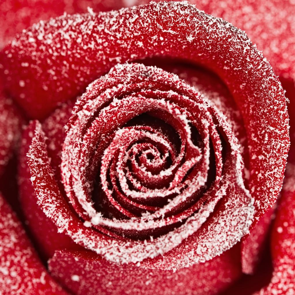 Wallpaper Red rose covered with hoarfrost close up