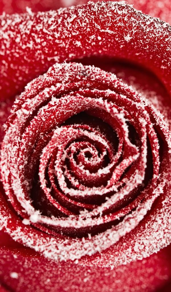 Wallpaper Red rose covered with hoarfrost close up