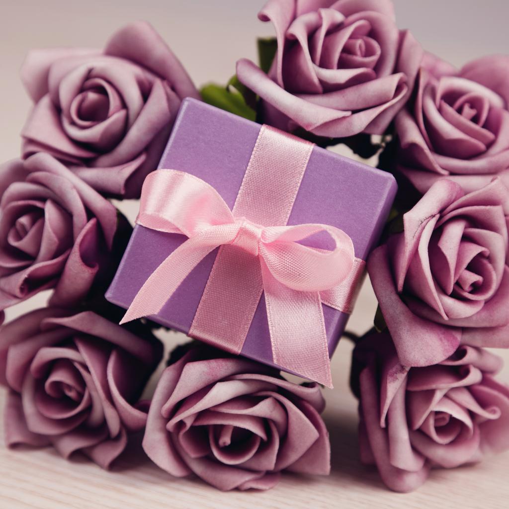 Wallpaper Gift with lilac roses