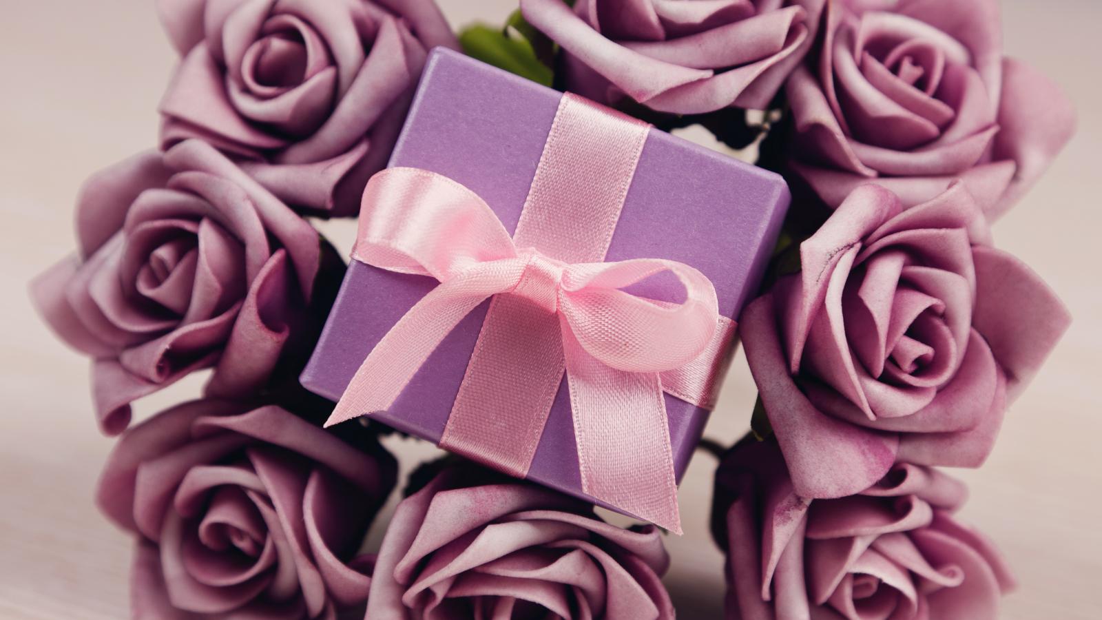 Wallpaper Red roses and a box with a gift on March 8