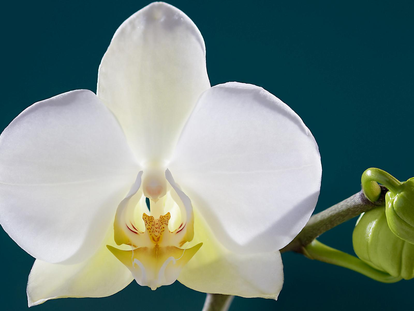 Wallpaper White orchid with buds close-up