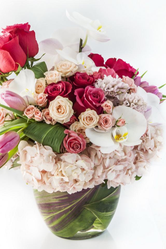 Wallpaper Beautiful bouquet of flowers in a vase on a white background
