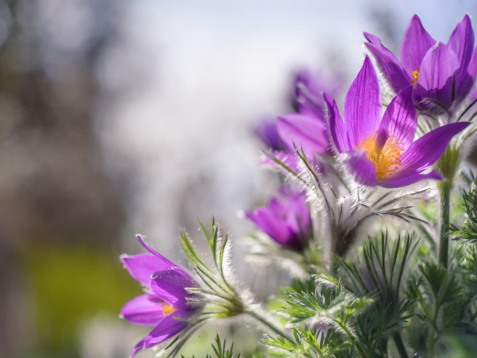 Wallpaper Beautiful violet flowers lumbago in the sun
