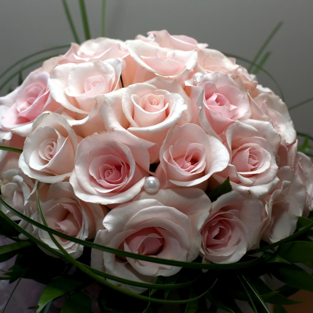 Wallpaper Beautiful bouquet of pink roses with beads