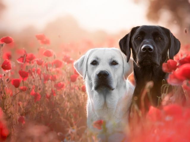 Wallpaper Two Labradors in the colors of the red poppy field