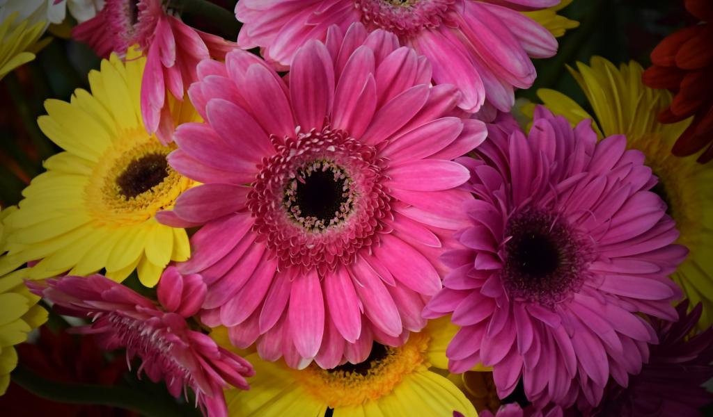 Wallpaper Delicate white gerbera flower with yellow center close-up