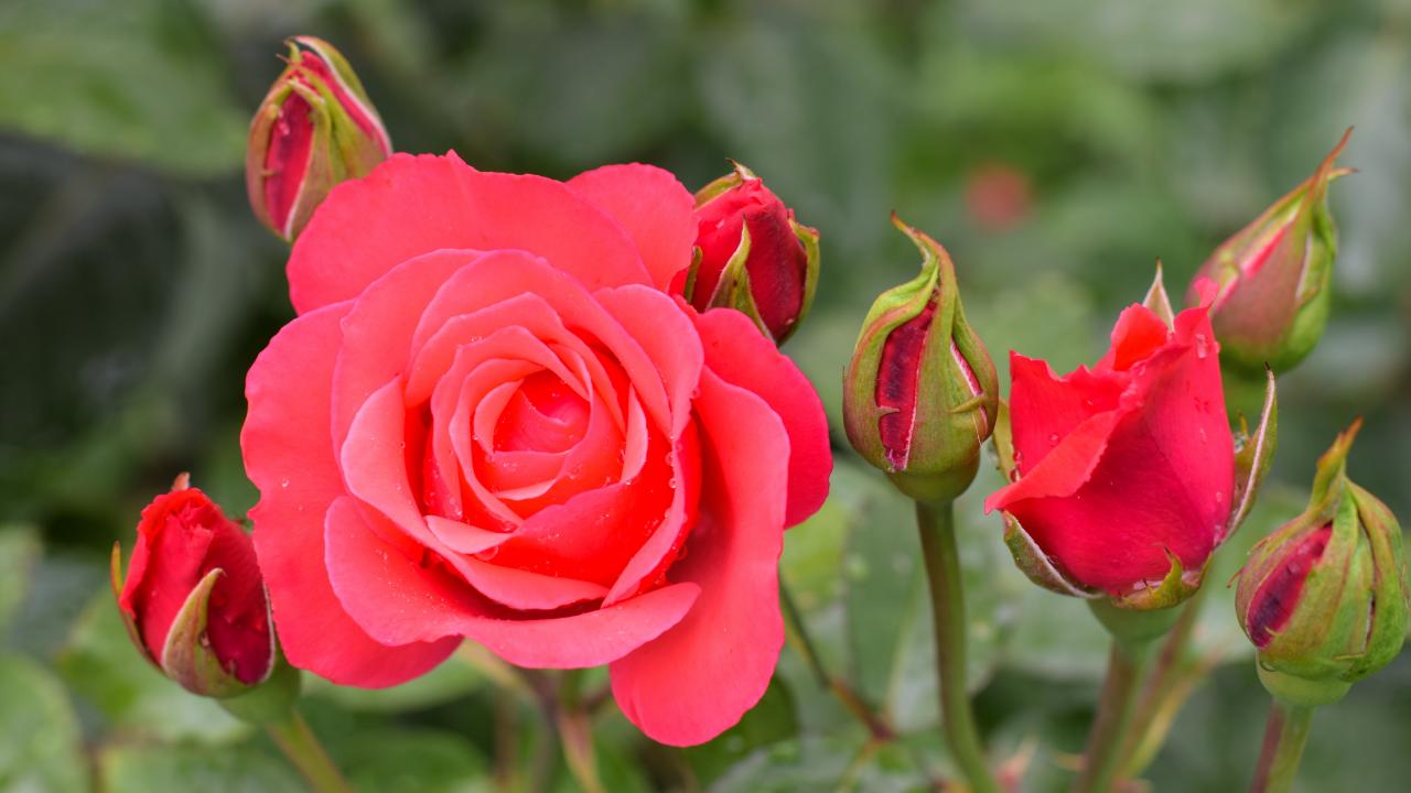 Wallpaper Red delicate rose with buds close-up
