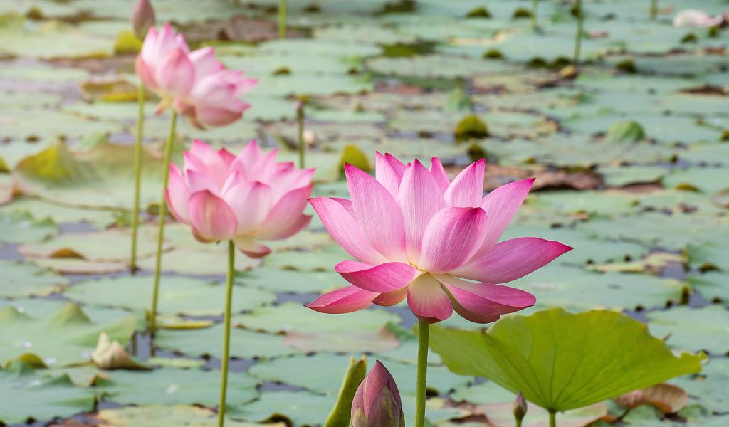 Wallpaper Pink tender lotus flowers in water